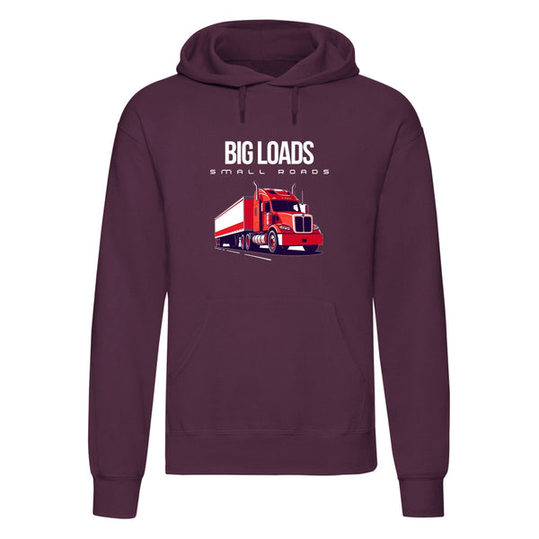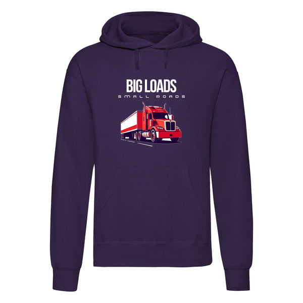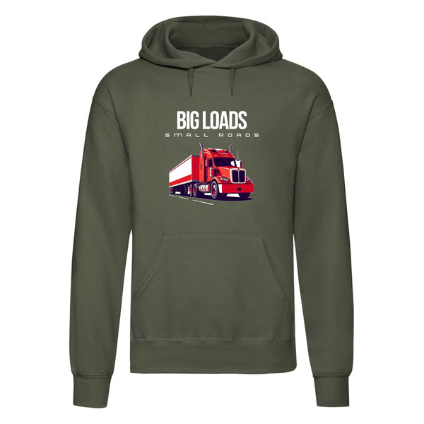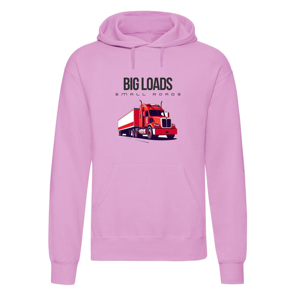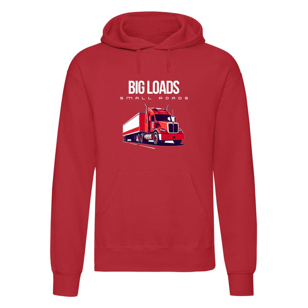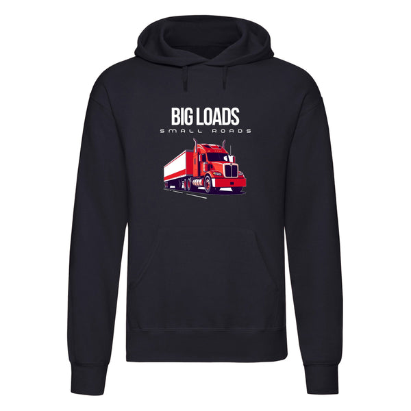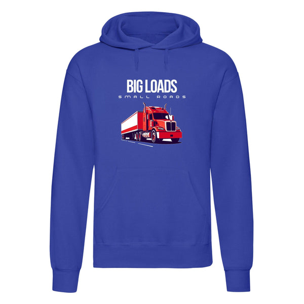 Show off your love for trucking with the Big Loads on Small Roads hoodie. Crafted for those who appreciate a blend of style, comfort, and durability, this hoodie features a bold truck graphic and is made from a high-quality 50% polyester and 50% cotton blend, giving you a soft, sturdy feel for all-day wear.